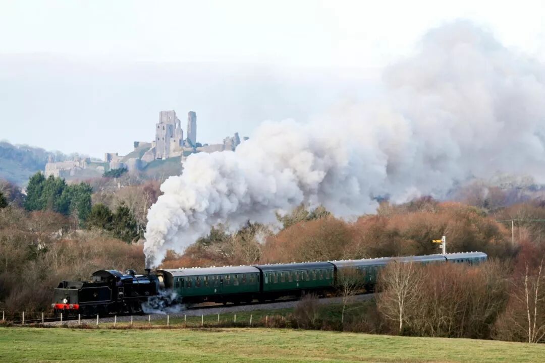 多尔塞特,斯沃尼奇铁路上的老式蒸汽机车; ANDREW MATTHEWS/PA