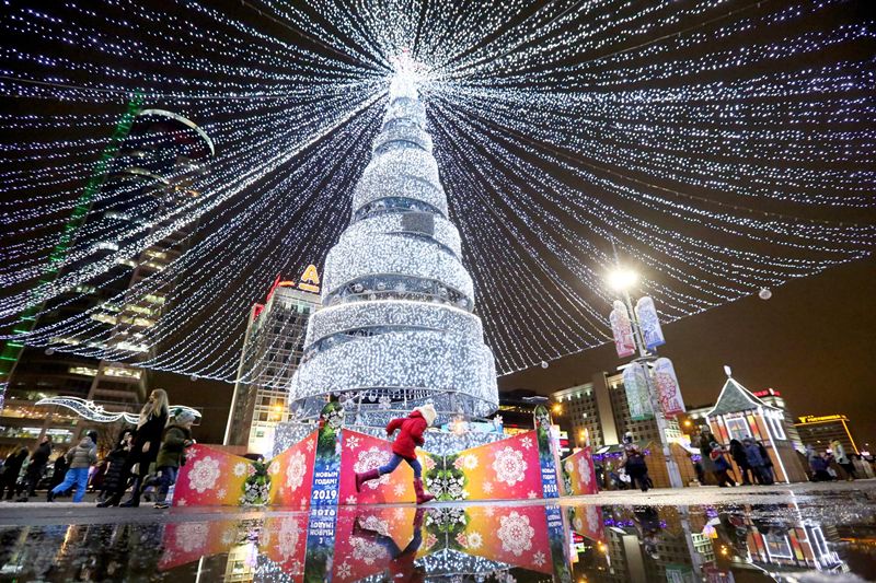 明斯克,新年灯树; TATYANA ZENKOVICH/EPA