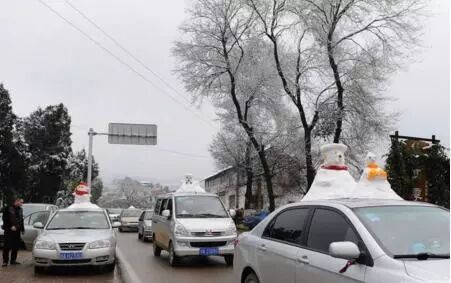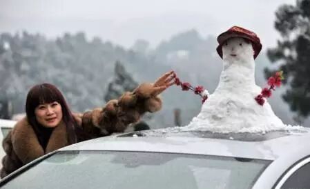 小雪人们买来后被安排在车顶上