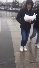 抱着个堆成雪兔子的男生: