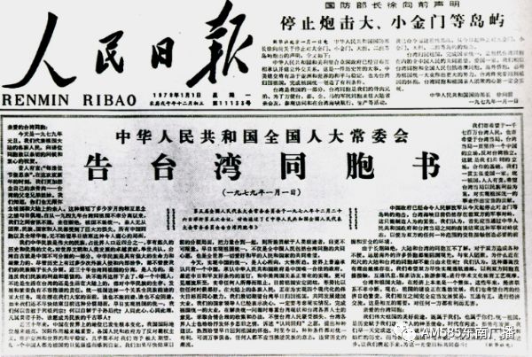 - 1月2日上午,《告台灣同胞書》發表40周年紀念會在北京舉行,習近平發表題為《為實現民族偉大復興 推進祖國和平統一而共同奮鬥》的重要講話,提出5項重大政策主張。 第一,攜手推動民族復興,實現和平統