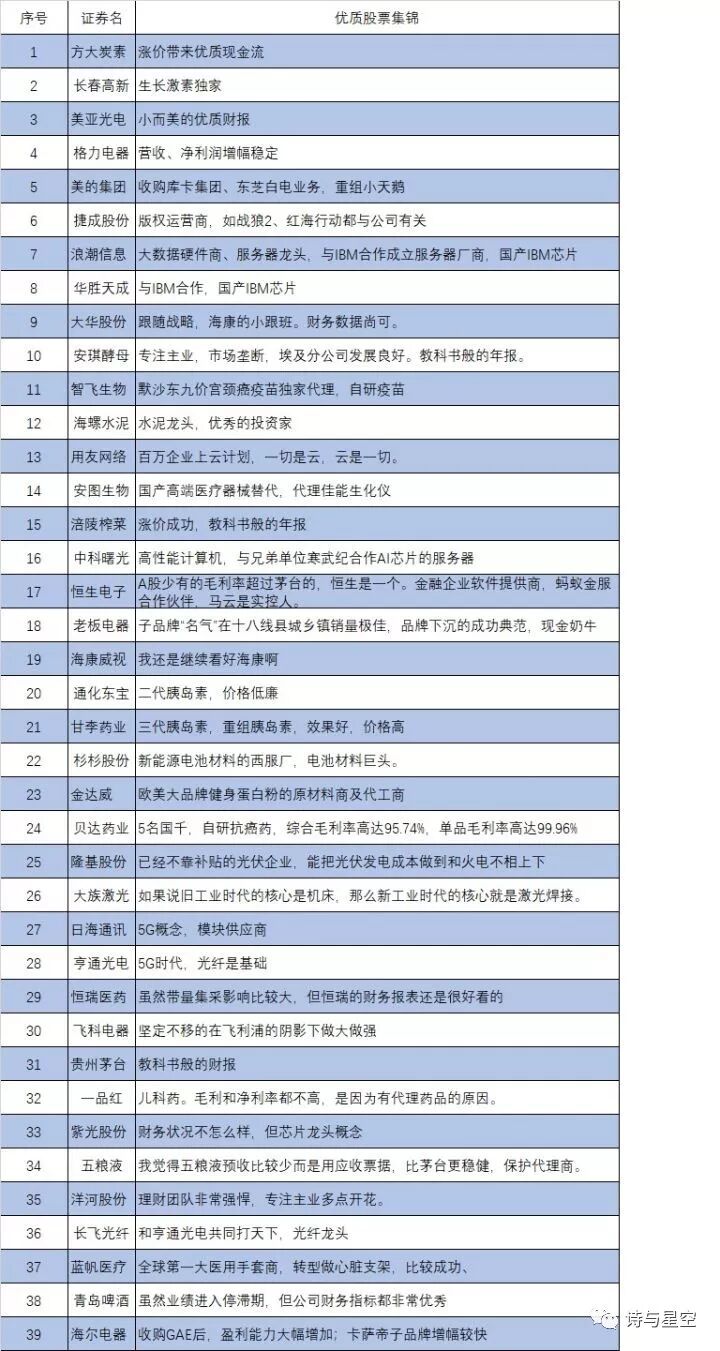 - 2018年终集锦(二):这里有一份A股好公司的锦囊(共计39家)