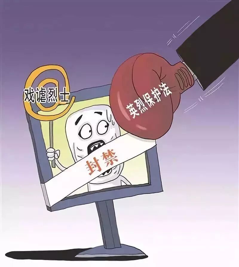 十三届全国人大常委会第二次会议全票表决通过了英雄烈士保护法。英烈保护法强调,以侮辱、诽谤或者其他方式侵害英雄烈士的姓名、肖像、名誉、荣誉,损害社会公共利益的,依法承担民事责任;构成违反治安管理行为的,由公安机关依法给予治安管理处罚;构成犯罪的,依法追究刑事责任。