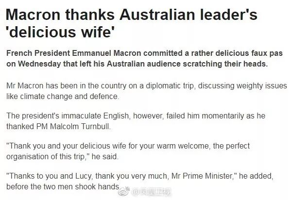 法总统马克龙访澳秀英文:澳总理夫人很美味