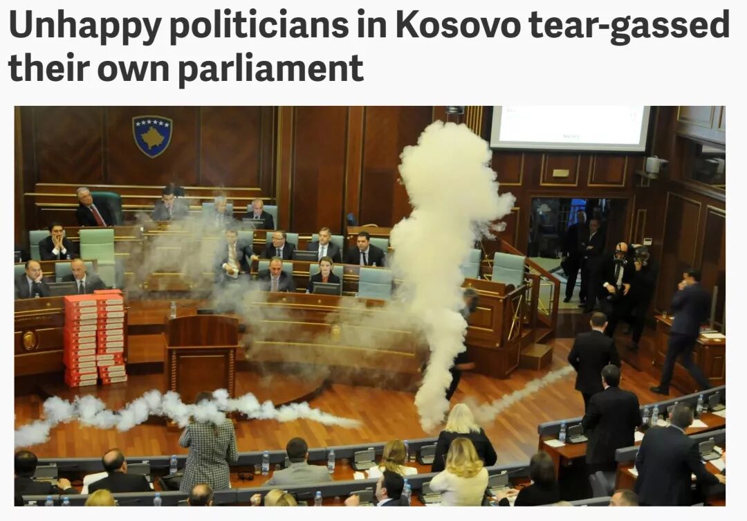 科索沃国会议员不满投票,在议会现场投掷催泪弹