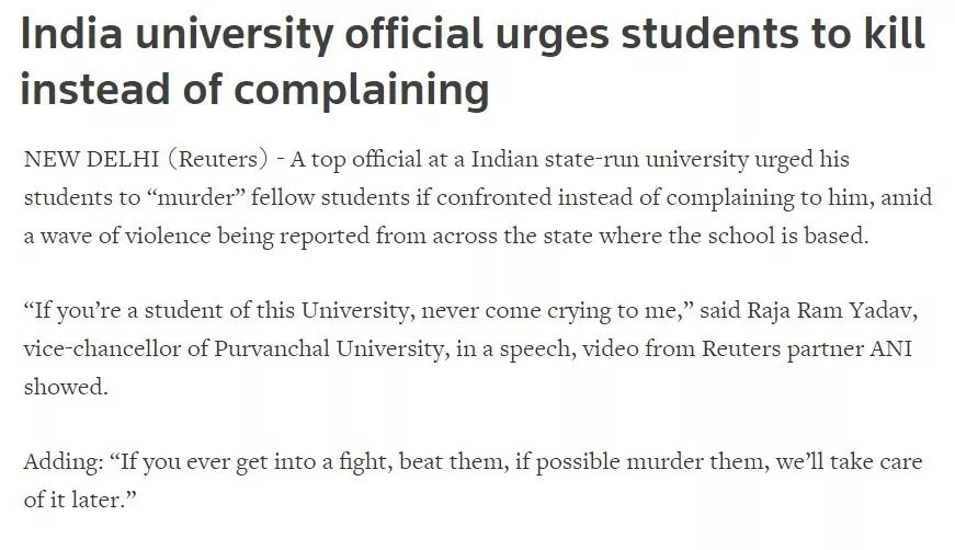 印度校长要求学生不要打架,要就直接把对方杀掉
