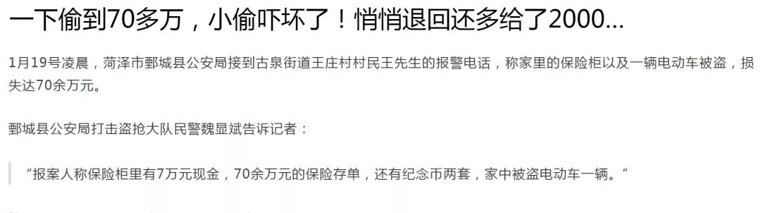 一下偷到70多万,小偷吓坏悄悄退回,还多给了2000