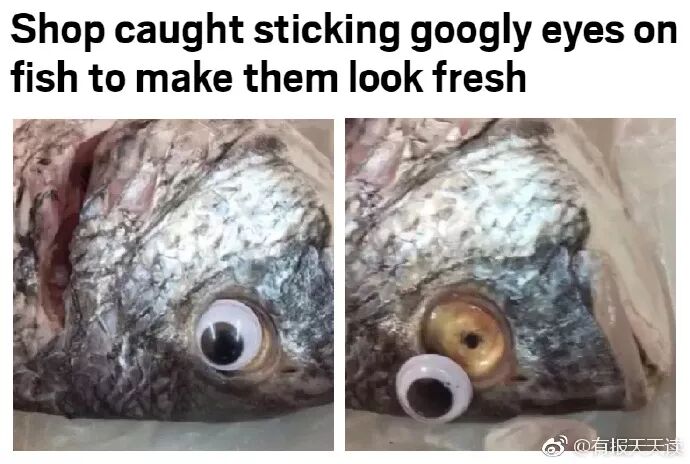 鱼目混珠:科威特鱼贩用假眼充鲜鱼骗顾客
