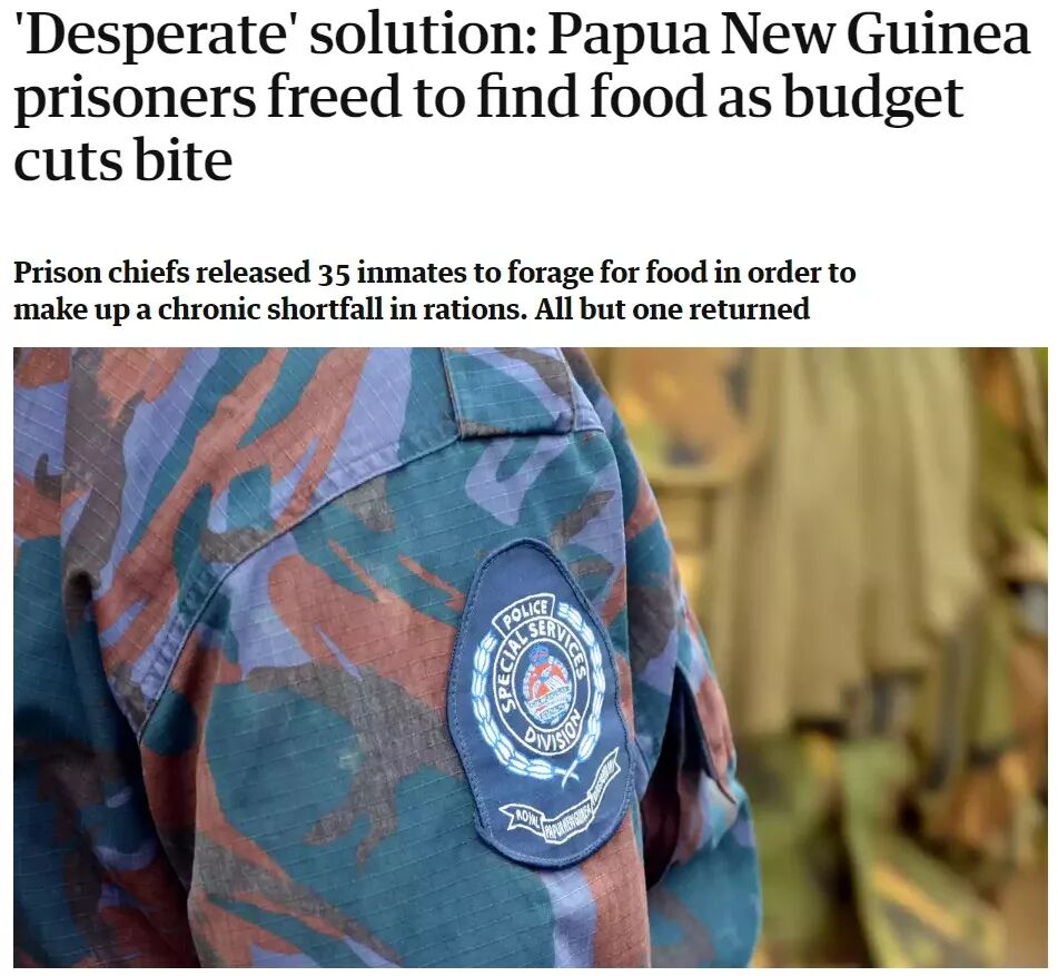 巴布亚新几内亚监狱缺粮,放35囚犯外出找食,34人已自愿返仓
