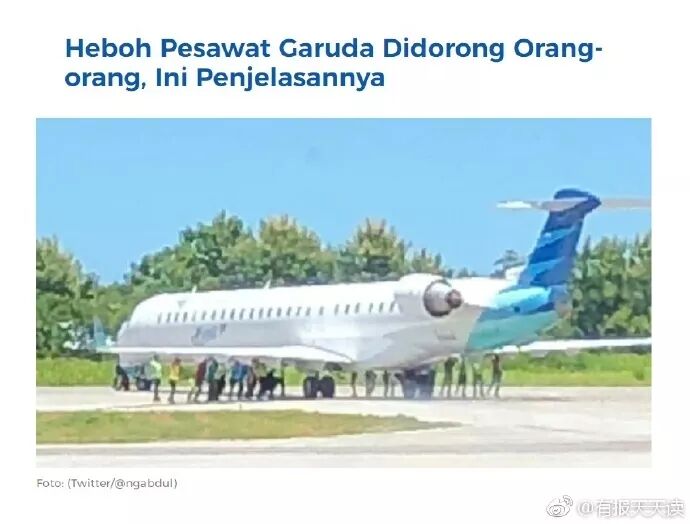 印度尼西亚客机降落冲过头,20人徒手推飞机