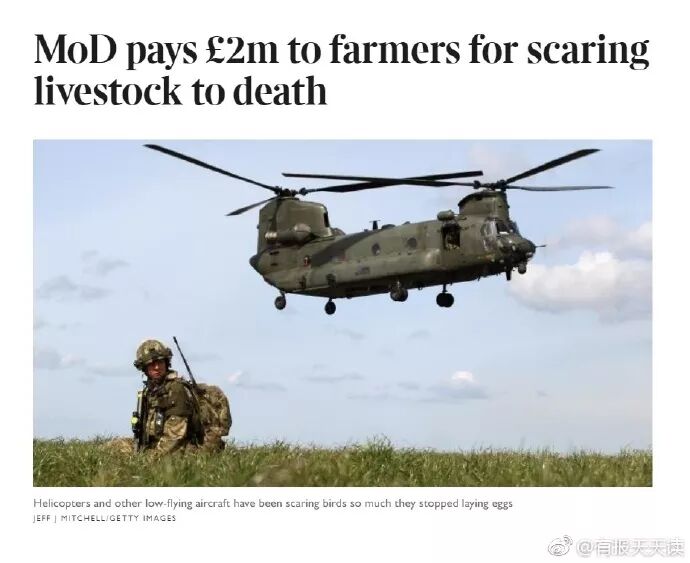 禽畜吓死,母鸡下不出蛋,英国防部为直升机噪音赔200万