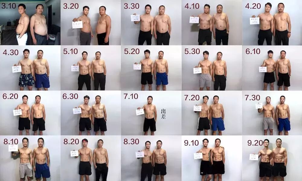 儿子见状,于是自己先增重20斤,也成个胖子,和父亲一起运动,只为了更好地激励父亲。