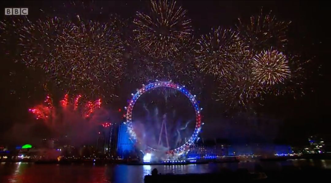 In the U.K., around 100,000 people turned up on the banks of the River Thames to watch the fireworks display.