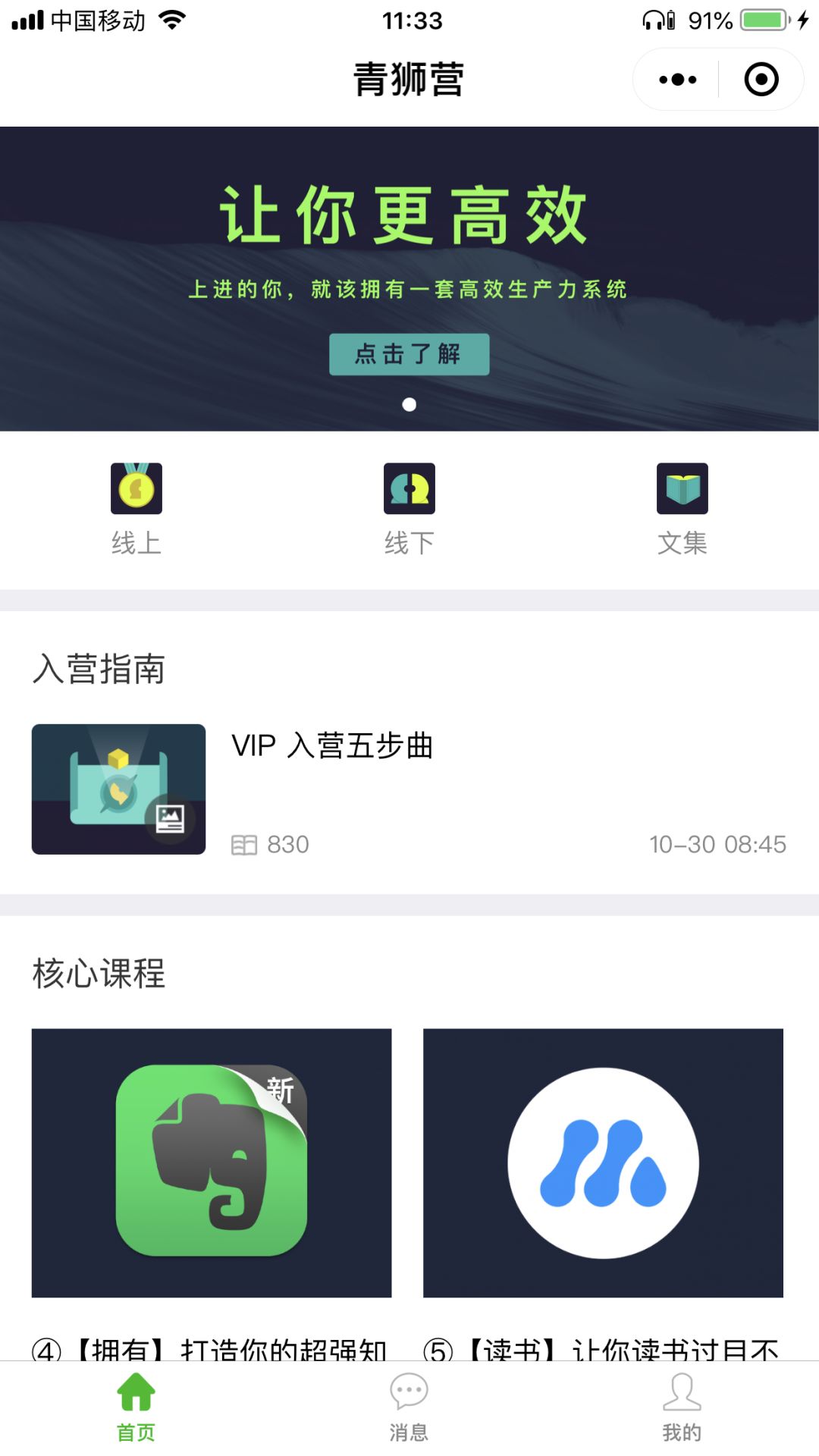当大家都开始慢慢习惯小鹅通版本的时候,我在 2018 年最后 2 天,决定弱化小鹅通,将青狮营全线迁移至企业微信。