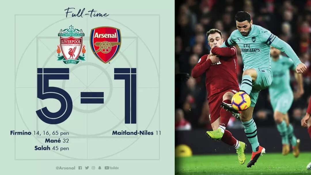 随后双方再无力改写比分,最终全场比赛结束,阿森纳客场1-5不敌利物浦,连续两场英超不胜。