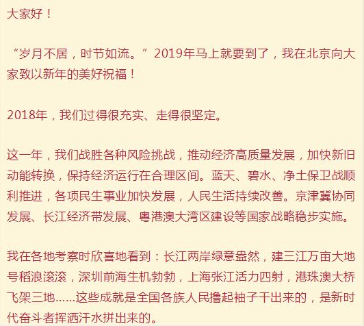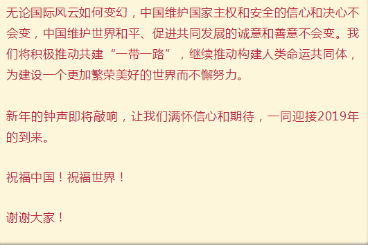 - 视频来了!国家主席习近平发表二〇一九年新年贺词