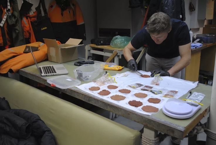 科学家们已经能够通过企鹅粪便的具体颜色来推断企鹅饮食的变化。下图中,生态学家凯西·杨菲什(Casey Youngflesh)正准备对企鹅的粪便进行颜色分析。他说:“企鹅粪便几乎和湿的金枪鱼沙拉一样粘稠。粪便有着刺鼻的鱼腥味,让人很不舒服。但这是你必须学会处理和应对的事情。”(似乎是一项有趣的工作。)
