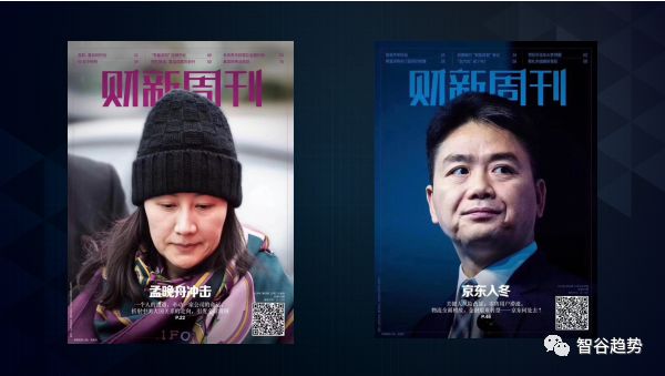 2018年以两个新闻人物作结:孟晚舟、刘强东。财新将他们作为连续两期的封面。