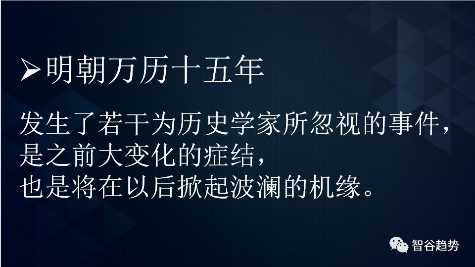- ◎智谷趋势(ID:zgtrend) | 严九元 注:本文为作者2018年内部讲座简明整理版。 2018是什么? 是明朝万历十五年?还是美国1899年? 01 年初的时候,我以为2018