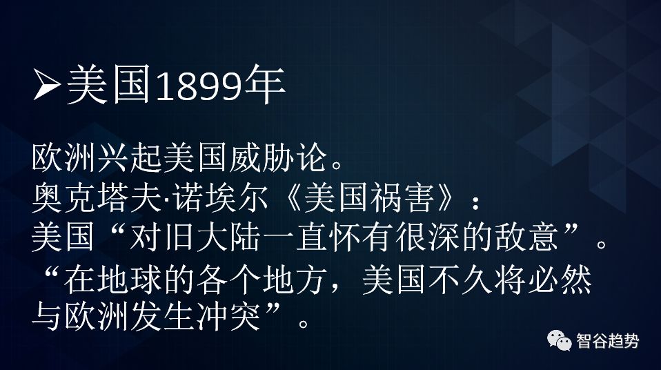 美国崛起过程,遭遇欧洲围堵。迈过了19世纪末20世纪初的重重挑战,美国此后一马平川,终至登顶。