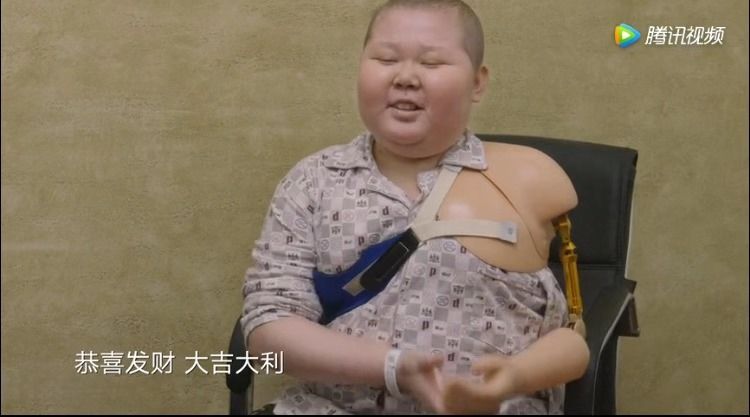 刚戴上的那天他露出了久违的笑容,并尝试着左右手相合,对着镜头笑嘻嘻地说了一句:“恭喜发财,大吉大利,红包拿来!”