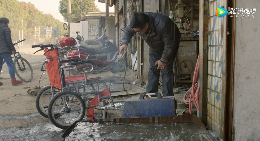 孩子的手术勉强算是做完了,爸爸亲手改造了轮椅,准备去火车站接女儿回厂里过年。