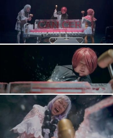 看着孩子们穿着超级英雄的服装,拿着锤子奋力地砸向“癌症”,一次又一次,一次比一次用力。