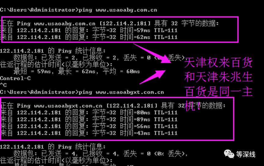 权来百货与朱兆生百货的网址PING地址,是同一IP地址,该地址显示其服务器为郑州电信。不过《等深线》记者通过技术手段确认到,目前www.usaoabgxt.shop的IP地址为103.75.0.148,该服务器位于香港,服务器提供商是香港天新集团(音,TIANXINGROUP-HK),位于香港湾仔。 图片提供:权健会员