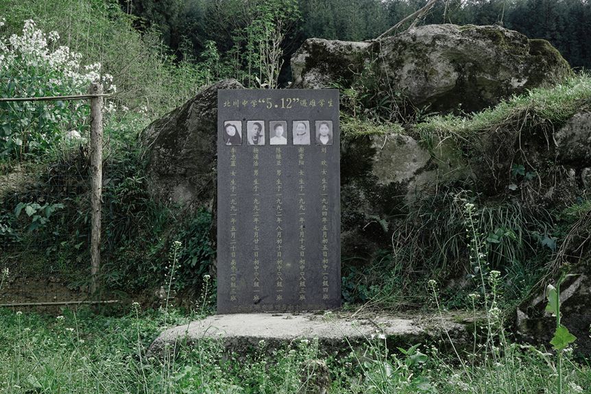 汶川“5.12大地震”十周年。图为2018年4月21日,汶川老县城附近山上的一个墓碑。