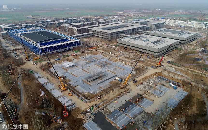 2018年4月1日,是雄安新区设立一周年纪念日。图为正在建设的雄安市民服务中心建筑群,总建筑面积超过10万平方米。雄安新区建设被定位为“千年大计、国家大事”。