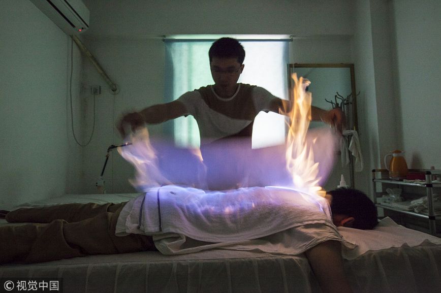 12月25日中午,丁香医生在其微信公众号发布的一篇文章《百亿保健帝国权健,和它阴影下的中国家庭》将权健公司推上风口浪尖,被指涉嫌虚假宣传、传销等诸多问题,引起广泛关注。图为福建泉州的火疗场景。