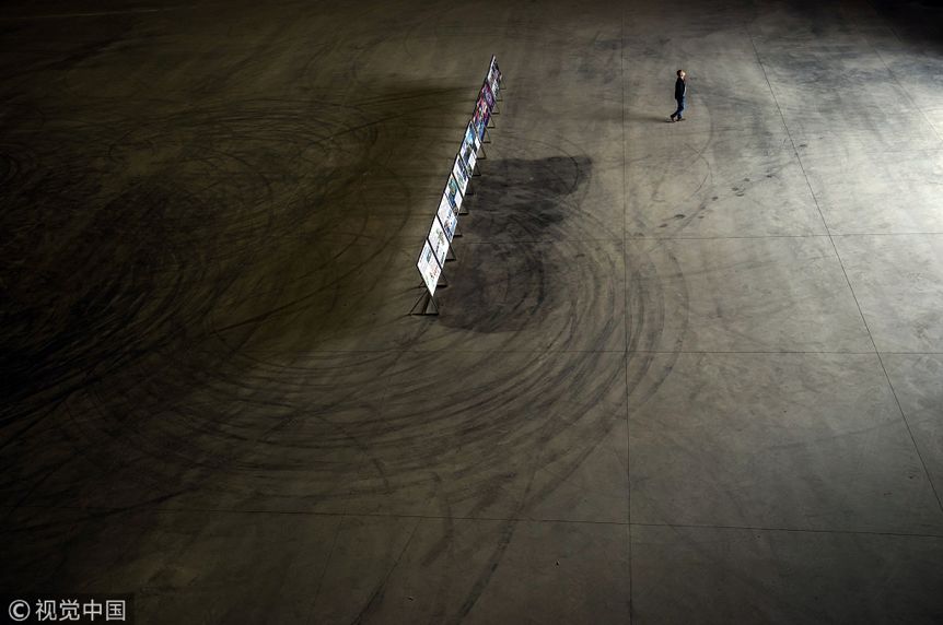 2018年4月17日,青岛万达东方影都影视产业园,一名男子走过一个声场。