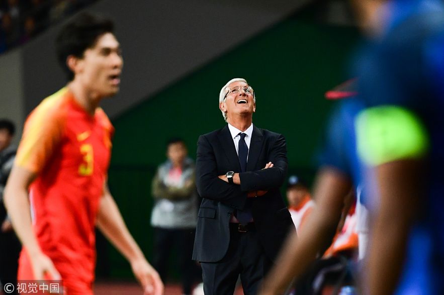 2018年10月13日,江苏苏州,2018国际足球友谊赛,中国男足0-0印度,里皮仰天大笑。