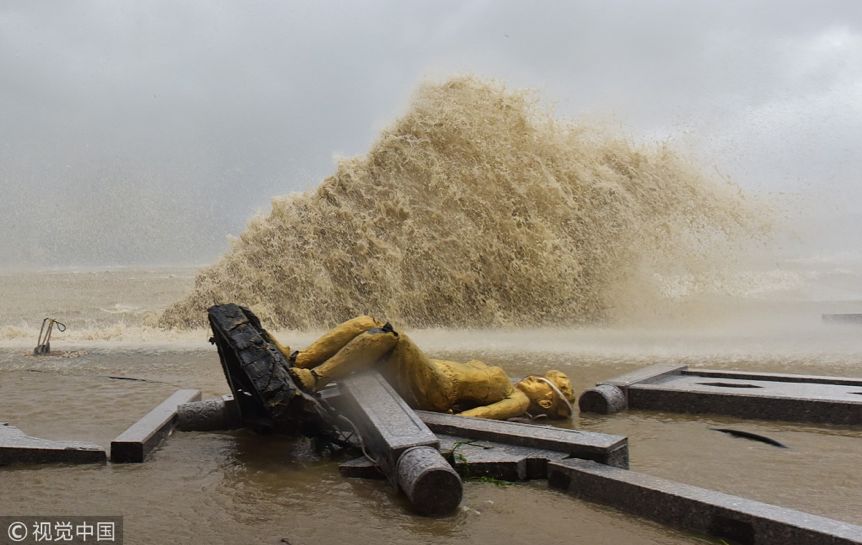 2018年9月16日下午,台风“山竹”在广东登陆,深圳大鹏新区较场尾海滩护栏大部分被吹倒,海边多个商家的大门被吹毁,海滩上掀起10多米高的巨浪。