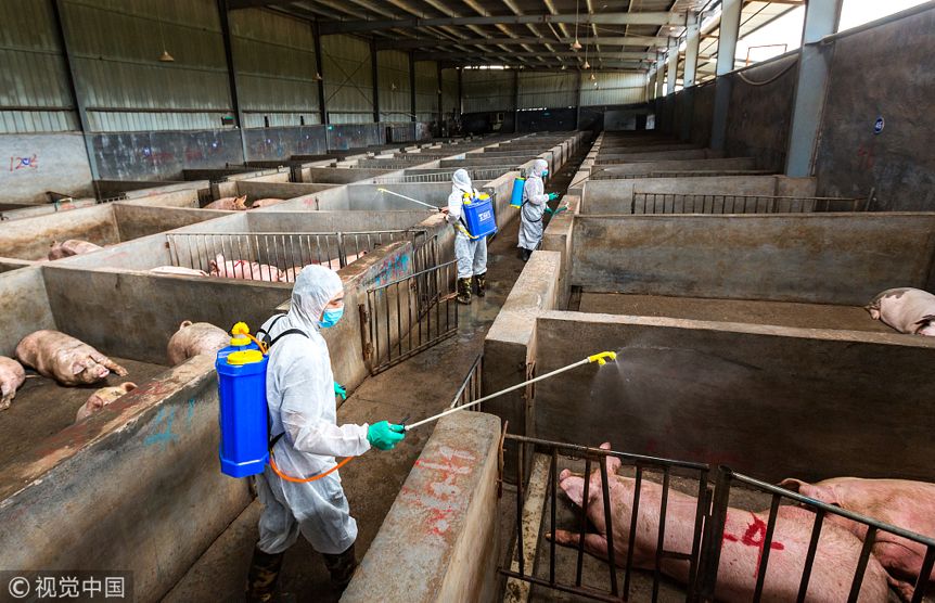2018年8月22日,浙江金华金东区畜牧兽医局工作人员,对屠宰场和养殖场场地、栏舍、装载运输车做好全面消毒,严防非洲猪瘟,保障畜产品安全。8月1日,辽宁沈阳出现首例疫情,目前已扩散到广东。