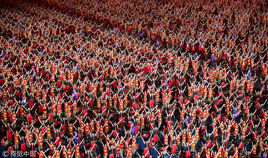 2018年4月28日晚,庆祝海南建省办经济特区30周年万人竹竿舞表演活动在海口五源河体育场举行。