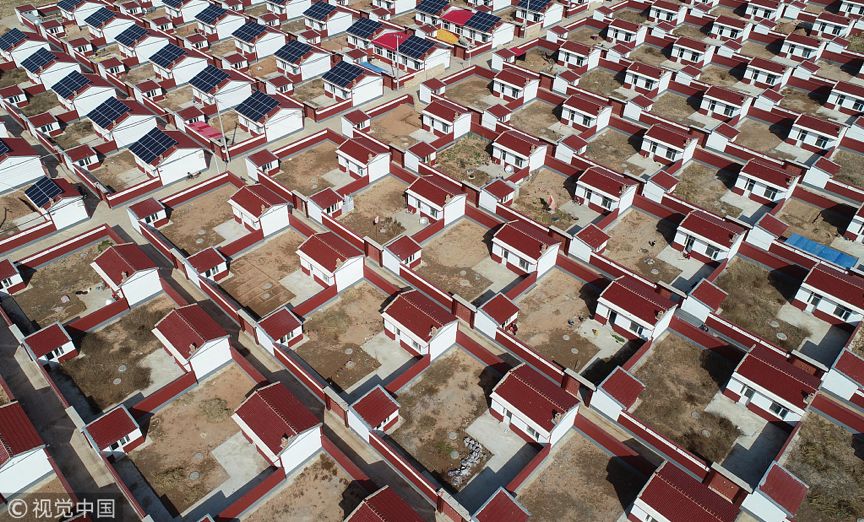 2018年10月19日,无人机拍摄的河北省张家口市宣化区塔儿村易地扶贫搬迁安置区,该安置区共安置水沟寨、吕家庄、新窑子三个搬迁村农民131户。