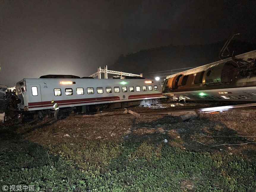 2018年10月21日16时50分,台湾宜兰苏澳新马车站发生列车出轨侧翻意外,有数节车厢旅客受困,事故致18人死亡、187人受伤。图为事故现场。