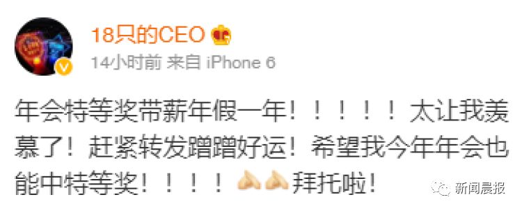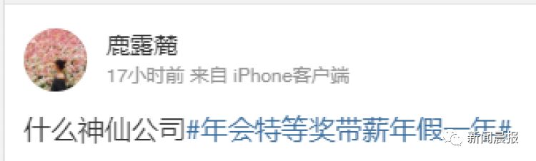 - 各家公司的年会陆续上演, 奖品则是大家最为期待! 这不,一家公司的特等奖火了 真相却让人大呼套路… What! ”带薪休假一年“ 啧啧啧 简直就是家神仙公司啊! 网友们纷纷表示实名羡慕! ↓↓↓