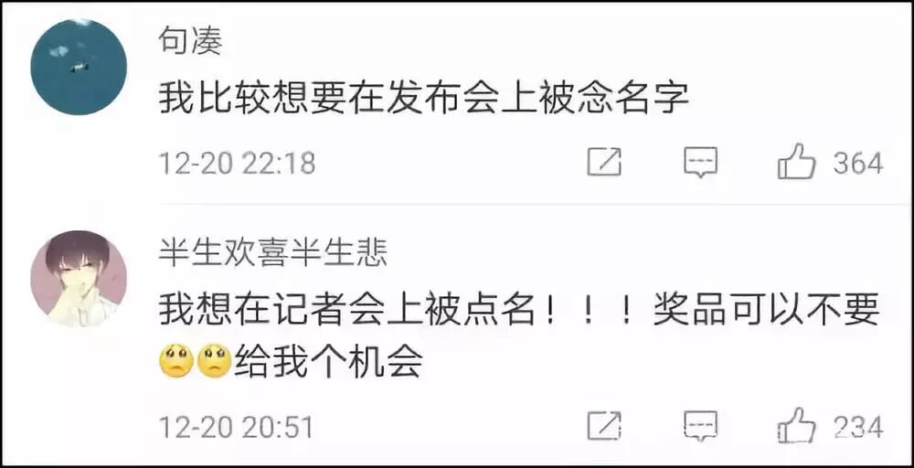 这十位幸运粉丝的产生,源于12月20日,微博@国防部发布 的一次抽奖活动,其中提到:“在国防部例行记者会上公布获奖者名单”。