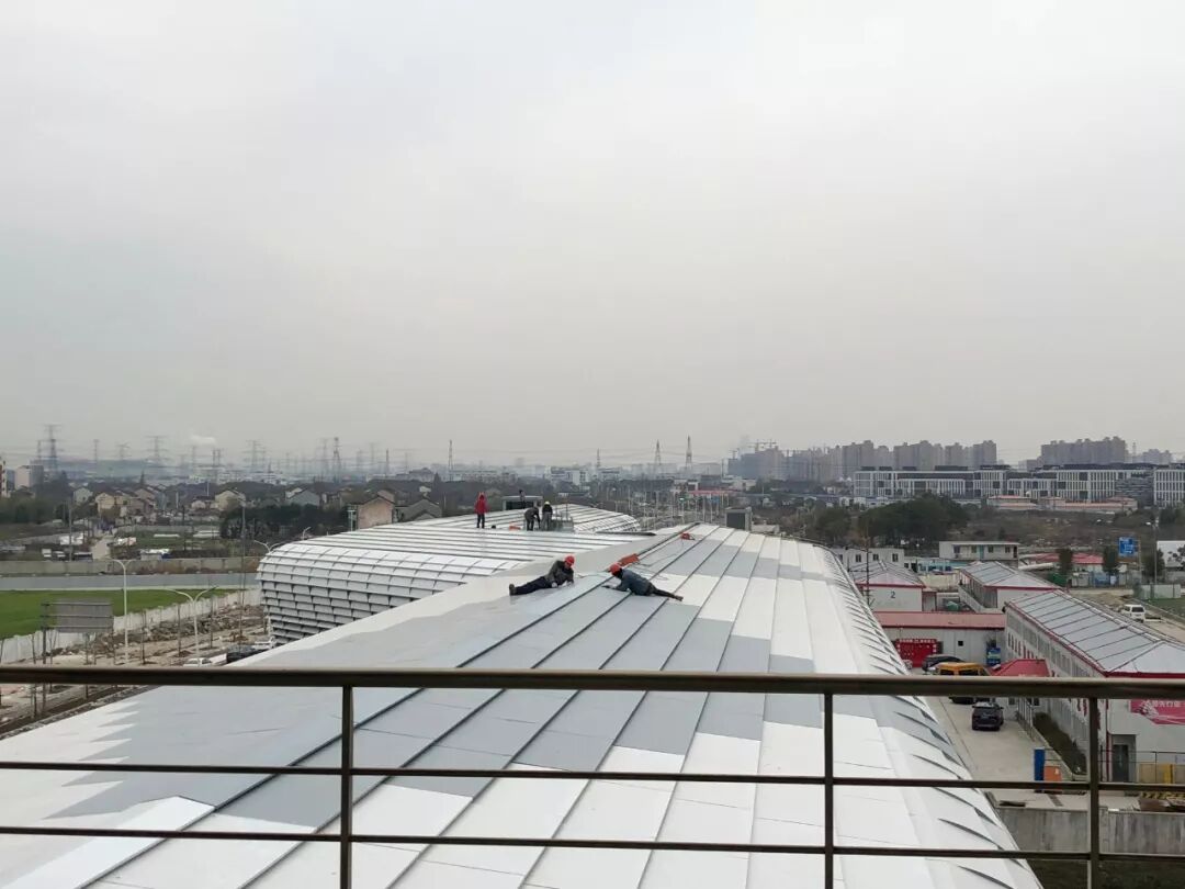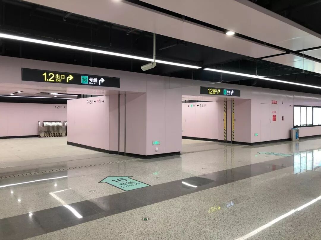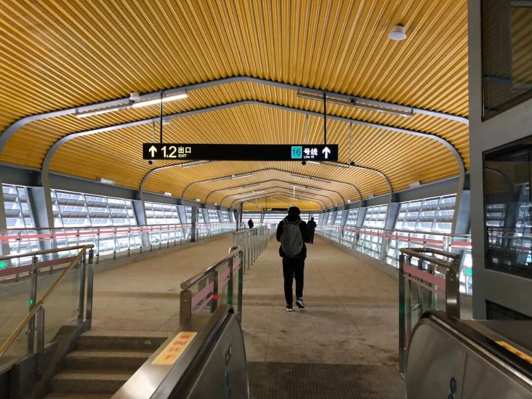 华夏中路换乘通道顶棚还在施工中,换乘的乘客请注意安全和保暖哦。