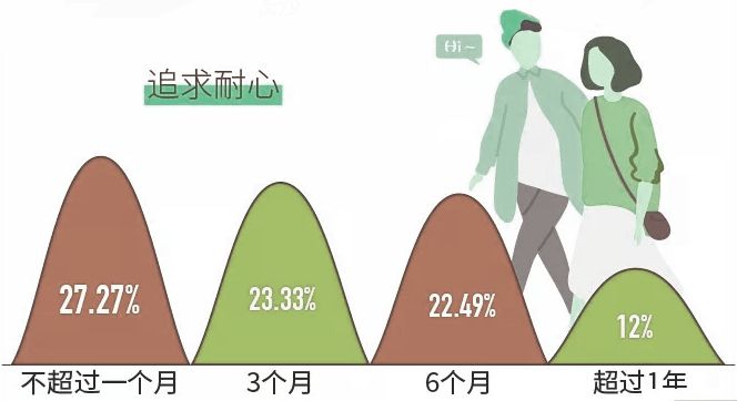 仅有12%的单身男女追求喜欢的人愿意超过1年。