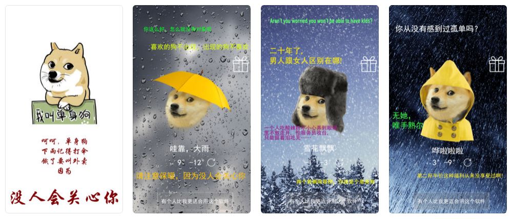 自带弹幕和狗头的单身狗天气预报,让你在一个人的日子里,也能接收到自然界的冷嘲热讽;一键杀马特的神奇相机,带你穿越时空,回到长发遮眼忘了爱的那些年。