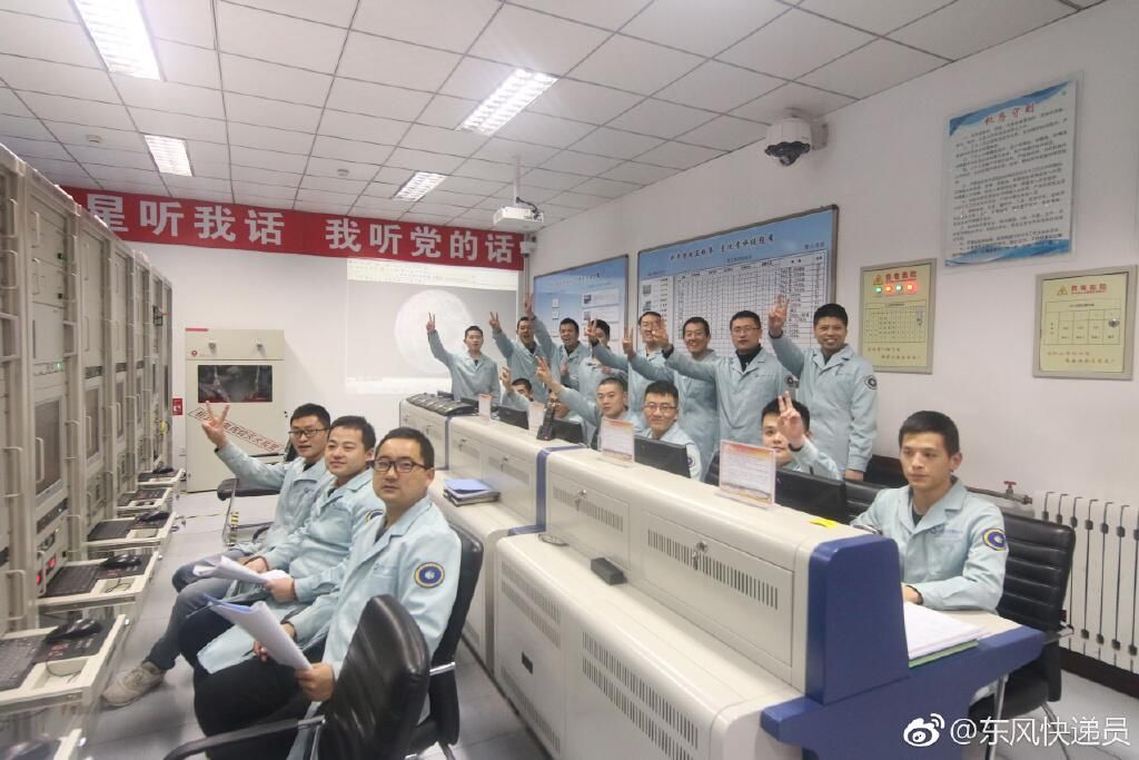这是幕后英雄之一:佳木斯深空站17人测控小组在任务达成后,呆萌地比起了剪刀手……