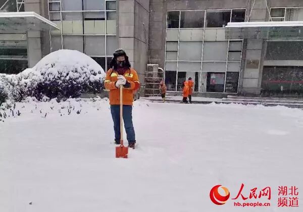 罗先平同事无意拍下他铲雪的照片