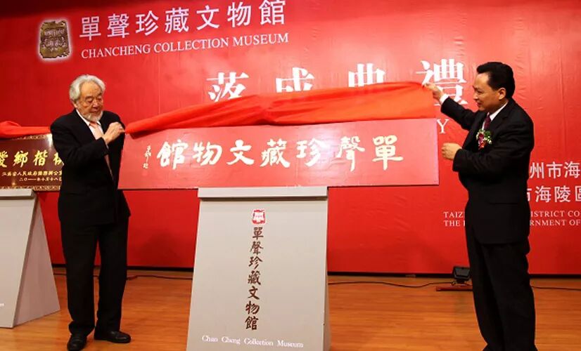 泰州市市长徐郭平和单声先生(左)为单声珍藏文物馆揭牌