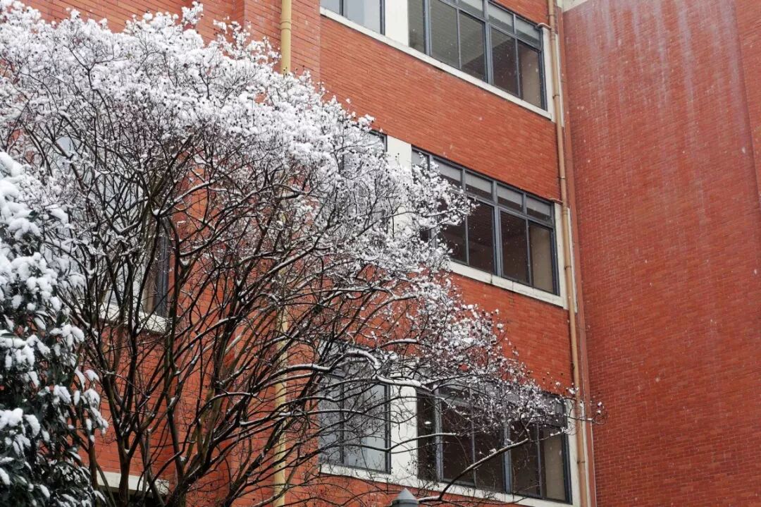 却惊喜而又意外地望见漫天飞雪和银装素裹的交大?