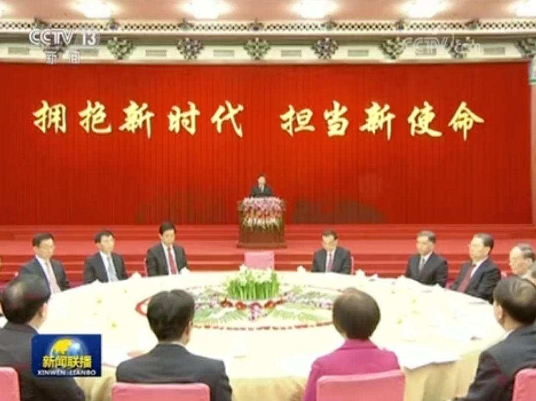 致公党中央主席万钢代表各民主党派中央、全国工商联和无党派人士讲话,表示将更加紧密地团结在以习近平同志为核心的中共中央周围,以习近平新时代中国特色社会主义思想为指导,高举中国特色社会主义伟大旗帜,不忘合作初心,继续携手前进,共同谱写中华民族伟大复兴的壮丽篇章。