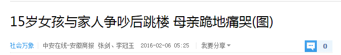 合肥市的一名15岁的女孩,就因不堪家庭纷争,坠楼身亡。