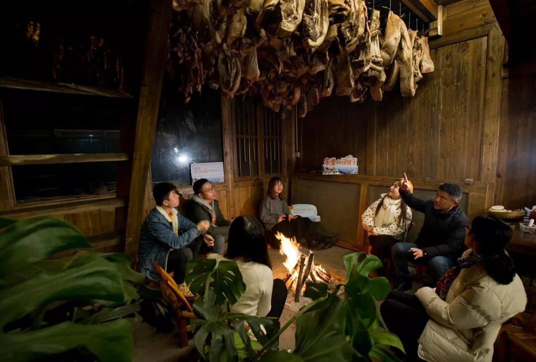 这里未必有酒池,但一定有肉林。腊肉是张家界土著的心头肉,所以火塘的上方悬挂着密密麻麻的腊肠和腊肉,像一排排悬梁自尽的天蓬元帅,那都是杨老板自己养的土产元帅。原叔生肖寅虎,望着那排腊肉垂涎不已,我真想向杨老板借一只活猪回去玩玩,就是当宠物养而已,没别的意思。